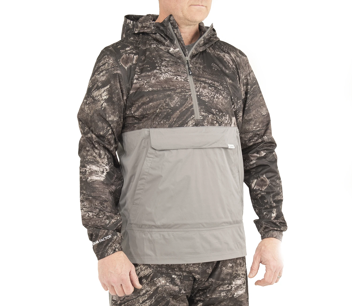 Lightweight Knit Flexible Shell with Rain-Factor Waterproof, Solar-Factor UPF 40+, and Soil/Stain Release easily packs into center front pocket to keep you outside longer. Please note: Jacket runs small – order a size up.