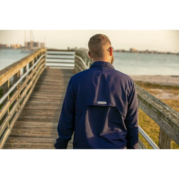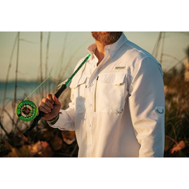Designed with moisture-wicking technology, this shirt effectively pulls sweat away from your skin, keeping you dry and comfortable. The dual front self-draining pockets and rod holder add functionality, making it easier to keep your essentials and gear organized.