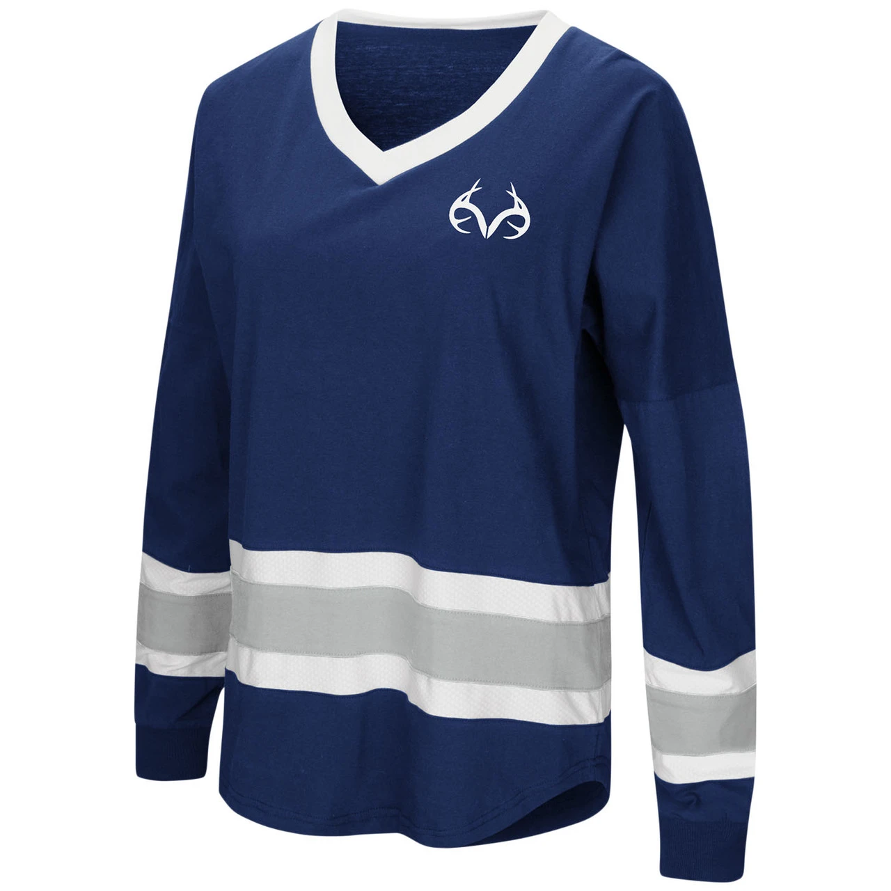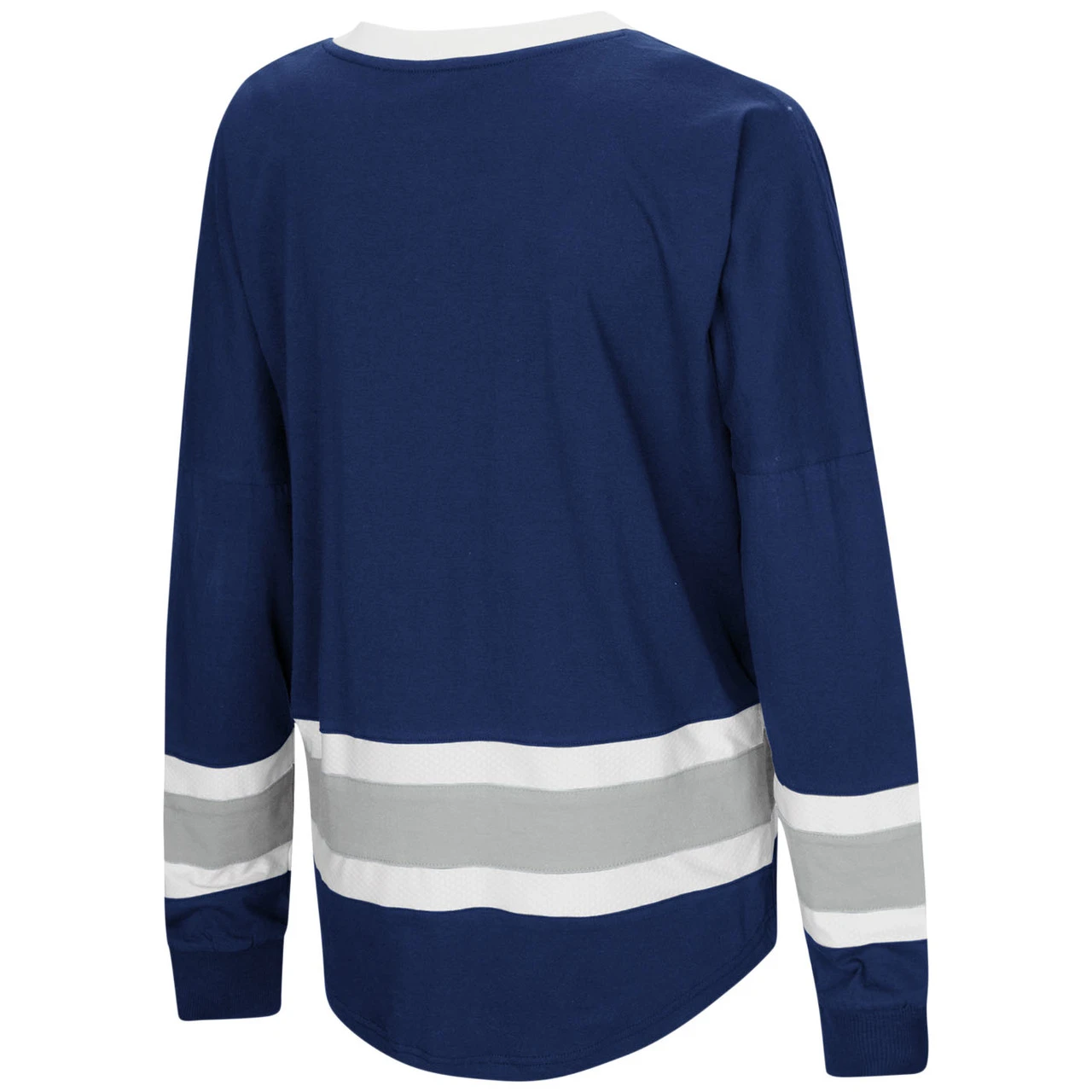 - Gray/White Stripes on Bottom of Shirt/Sleeve